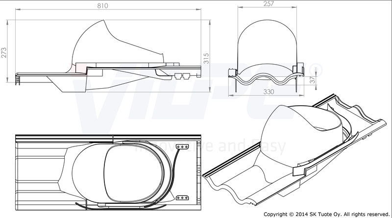 Käyttökohteet: Yleisimmät betonitiilikatteet. Korvaa kaksi 2-kouruista kattotiiltä L 330 mm, K 27-40 mm. HUOM! VILPE XL-läpiviennit sopivat vain VILPE XL-poistoputkiin ja XL-huippuimureihin, Ø 160 – 250 mm. Sisältö: Läpivienti, XL-aluskaterengas, ruuvit.