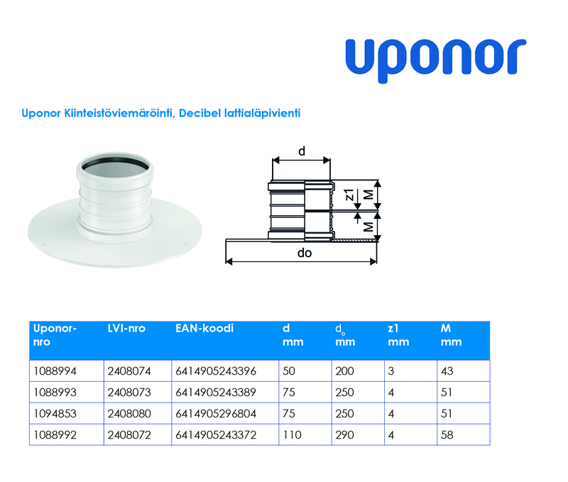 UPONOR DECIBEL Lattialäpivienti dB PP 110/VALKOINEN 1088992