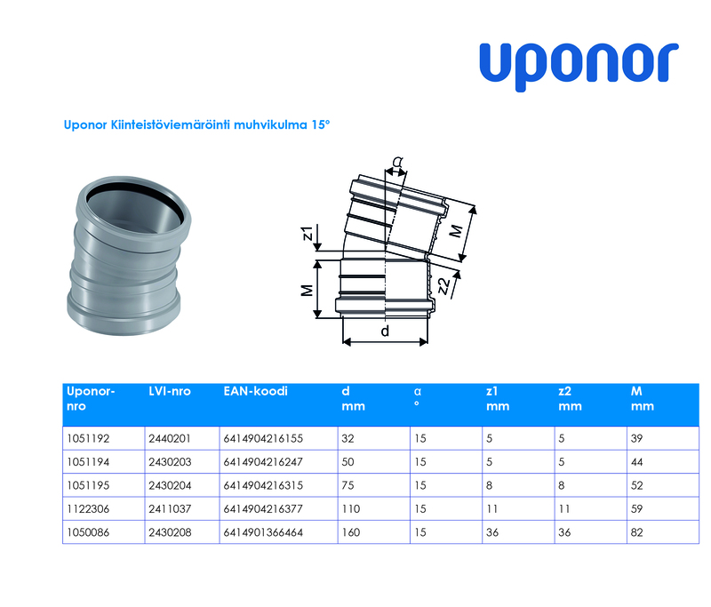 UPONOR HTP Muhvikulma PP DN 75/15AST./HARMAA 1051195