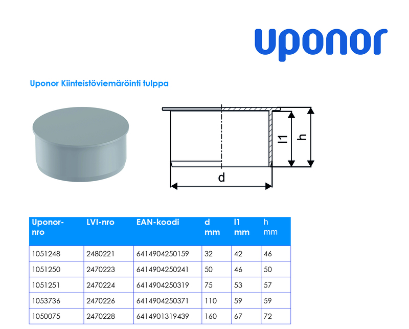 UPONOR HTP Tulppa PP DN 50/HARMAA 1051250