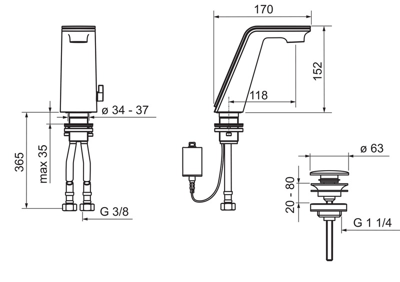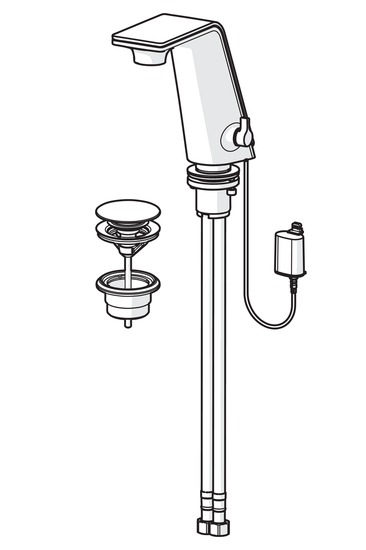 Pesuallashana, jossa kiinteä juoksuputki, kääntyvä poresuutin ja helppokäyttöinen pohjaventtiili. Hana avautuu päältä kevyesti painamalla, minkä jälkeen hana on auki 6 sekuntia (tehdasasetus). Painamalla hanan päältä sekunnin ajan, hana pysyy auki minuutin ajan. Kun hanaa painetaan 4 sekuntia, hana menee ns. siivoustilaan ja pysyy suljettuna 20 sekunnin ajan. Hanan lämpötilansäädin toimii myös virtaaman säätimenä. Paristokäyttöinen 6 V. Design Rodrigo Torres. Joustavat kytkentäputket.
