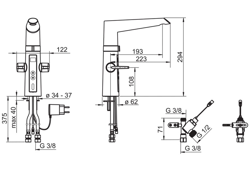 Älykäs keittiöhana, jossa Easy Grip-kahvat kuumalle ja kylmälle vedelle, kosketusvapaa toiminto, lämpötilanäyttö, jossa kuuman veden varoitin, korkea juoksuputki, poresuutin ja älykäs pesukoneventtiili. Kuuman ja kylmän veden virtaama säädetään erillisistä vivuista. Juoksuputken kääntymiskulma on 120° (mahdollista rajoittaa 60° tai 80°). Kosketusvapaa toiminto avataan viemällä kädet tunnistusetäisyydelle. Kosketusvapaan toiminnon veden lämpötila säädetään kääntämällä hanan ja juoksuputken välissä olevaa säätörengasta. Kosketusvapaa toiminto on helppo ottaa käyttöön/pois käytöstä. Pesukoneventtiili avataan painonapista ja se sulkeutuu automaattisesti säädetyn ajan jälkeen. Pesukoneventtiili sulkeutuu automaattisesti neljän tai kahdentoista tunnin kuluttua (yhdellä painalluksella pesukoneventtiili on auki 4 tuntia ja viiden sekunnin painalluksella 12 tuntia). Sähköliitäntä pistotulppamuuntajalla 230/5 V.