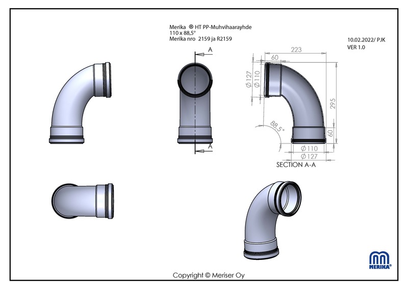 Muhvikulmayhde HT L+ 110x88,5 pyörist. RUSKEA |
