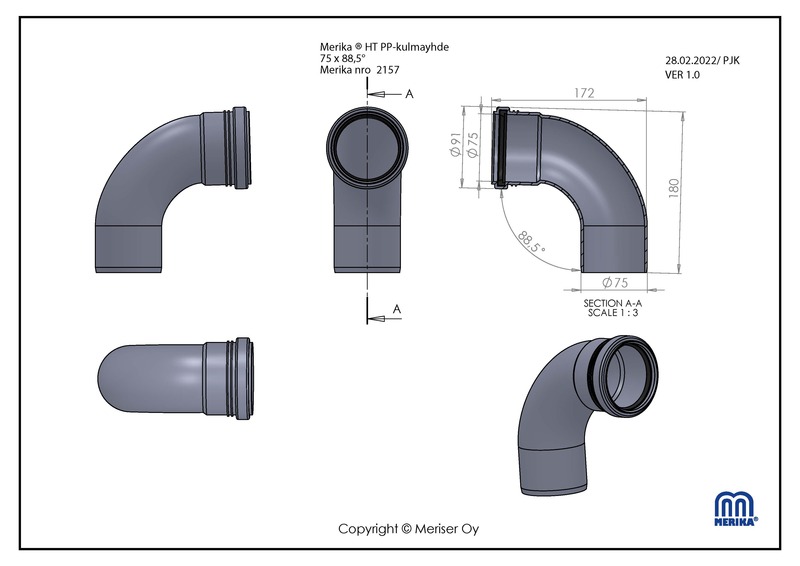 DN 75/88.5°/PYÖRISTETTY/HARMAA |
