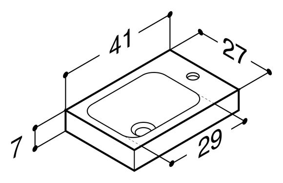 Dansani Luna Micro Menuet kalusteallas 41x27x7 cm valkoinen posliini hanareikä ylivuotoaukko