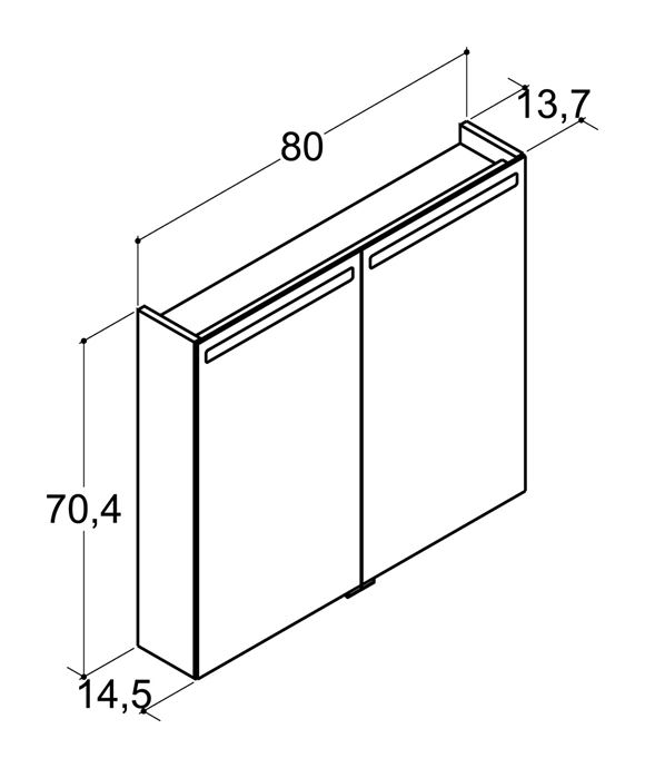 Dansani Mido -sarjan 80 cm leveä valaisinpeilikaappi 2:lla ovella, väriltään mattaharmaa. Valaisinpeilikaappi sisältää vetimet. Tuotteessa on päävalaistus. Tuotteessa on siirrettävä pistorasia.