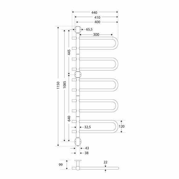Nordhem Vaxholm sähköinen pyyhekuivain vakiolämpötilalla 44x114 cm kiillotettu rst 78W |