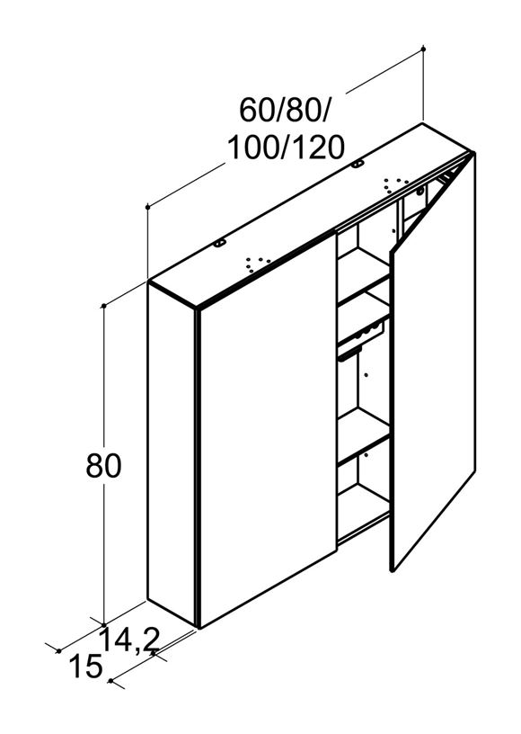 Dansani Calidris Primo peilikaappi 60x80x15 cm valinnainen väri puuviilu 2 ovea ilman vetimiä valaistusvalmius valaistuksenohjaus pistorasia oikealla