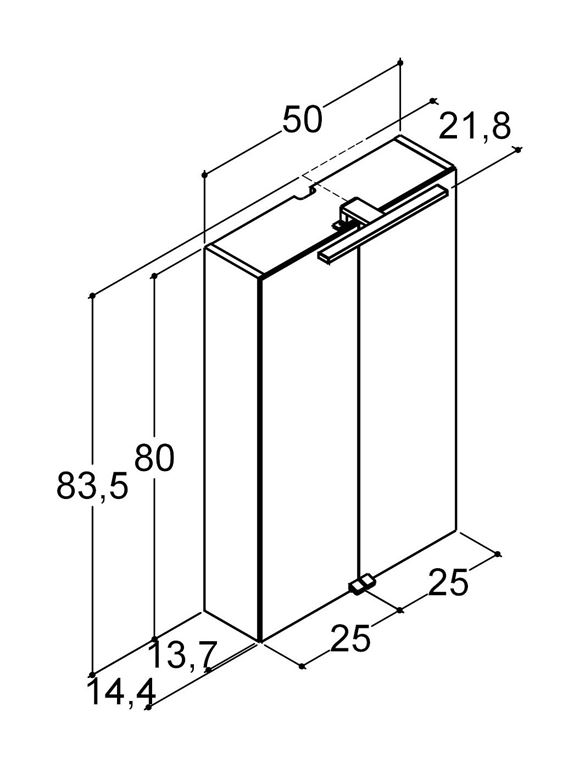 Dansani Pro Better -sarjan 50 cm leveä valaisinpeilikaappi 2:lla ovella, väriltään musta tammi. Tuotteessa on led päävalaistus. Tuotteessa on siirrettävä pistorasia.