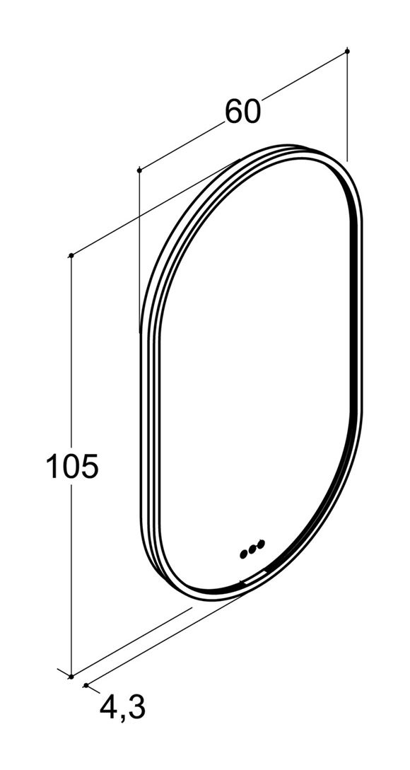 Dansani Moon Oval peili valolla 60x105x4,3 cm messinki päävalaistus valaistuksenohjaus