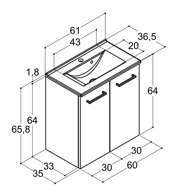 Dansani Pro Good -sarjan 61 cm leveä kalustesetti Mini Amber -altaalla 2:lla ovella, väriltään mattavalkoinen rPET. Kalustesetti sisältää vetimet. Tuote soveltuu asennettavaksi seinä- tai lattiaviemäröinnillä. Vetimen c/c-mitta on 160 mm. 2023 päivitys, vakiovedin KD189547243 Base kiiltävä kromi 17 cm