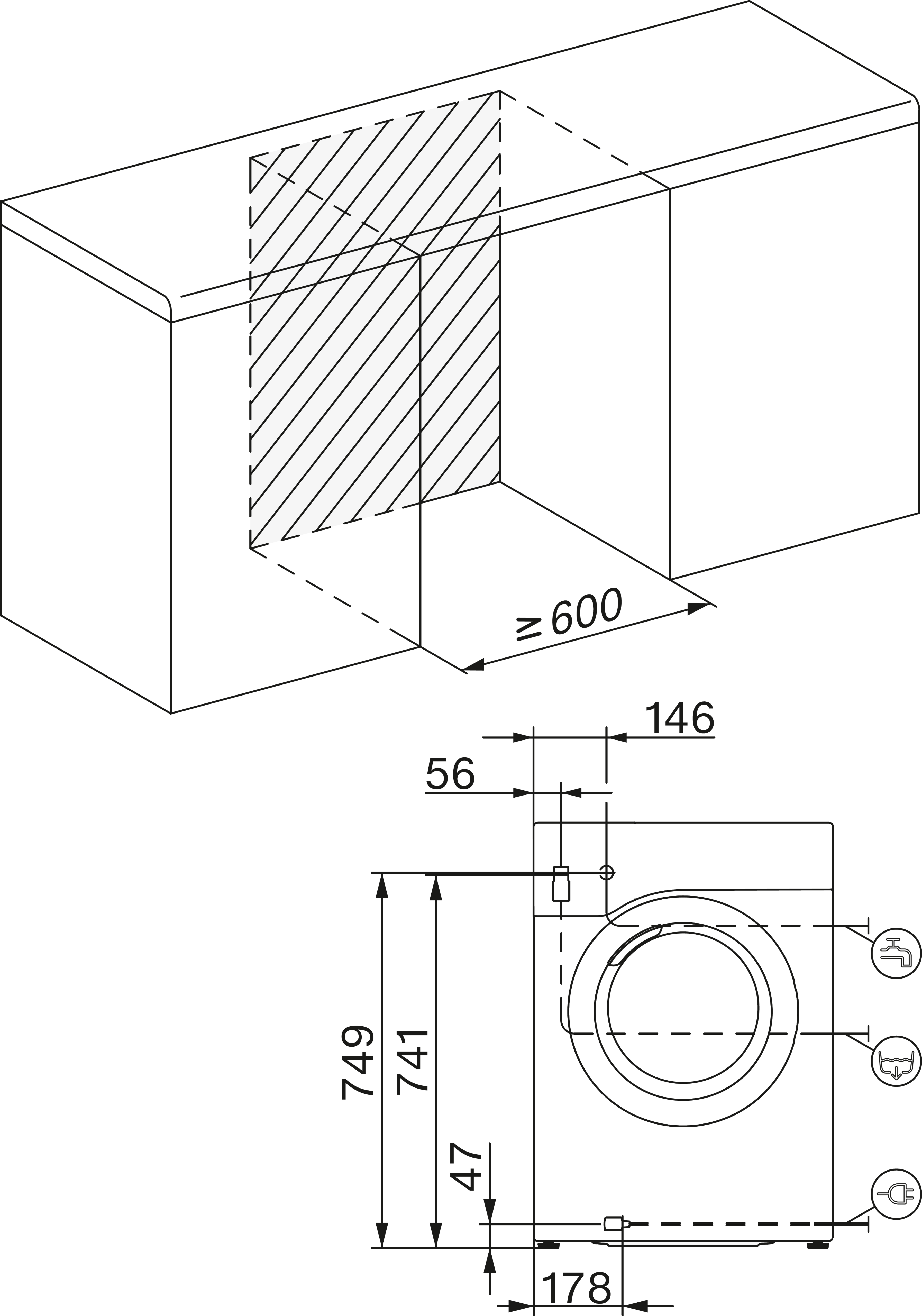 W1 edestä täytettävä pyykinpesukone: B I 7 kg I 1400 kierr./min I CapDosing I kennorumpu I AddLoad |